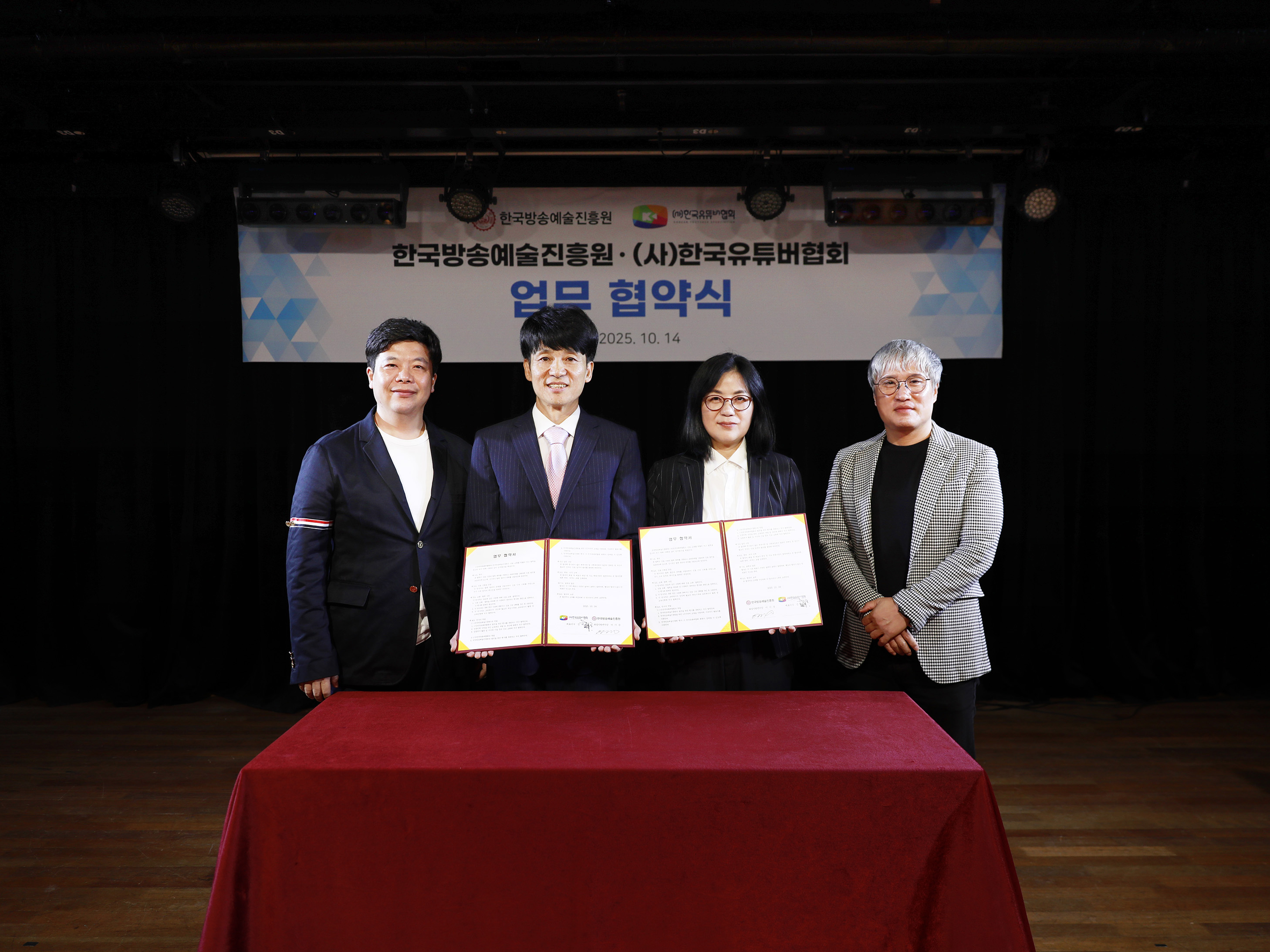 (사)한국유튜버협회 - 한국방송예술진흥원, 미디어·콘텐츠 전문인재 양성을 위한 업무협약 체결 (사)한국유튜버협회(대표이사 정대호)와 한국방송예술진흥원(이기순 센터장)은 2025년 10월 14일, 서울 소재 한국방송예술진흥원 아트홀..